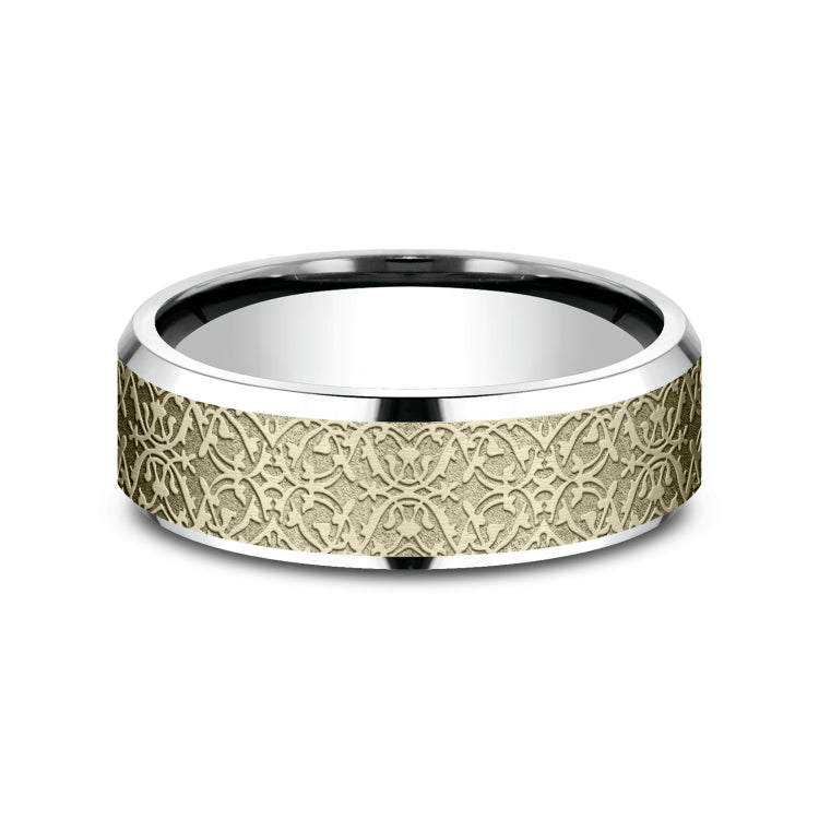 7mm, Lightweight comfort fit14K White and Yellow GoldOttoman pattern, polished bevel edges