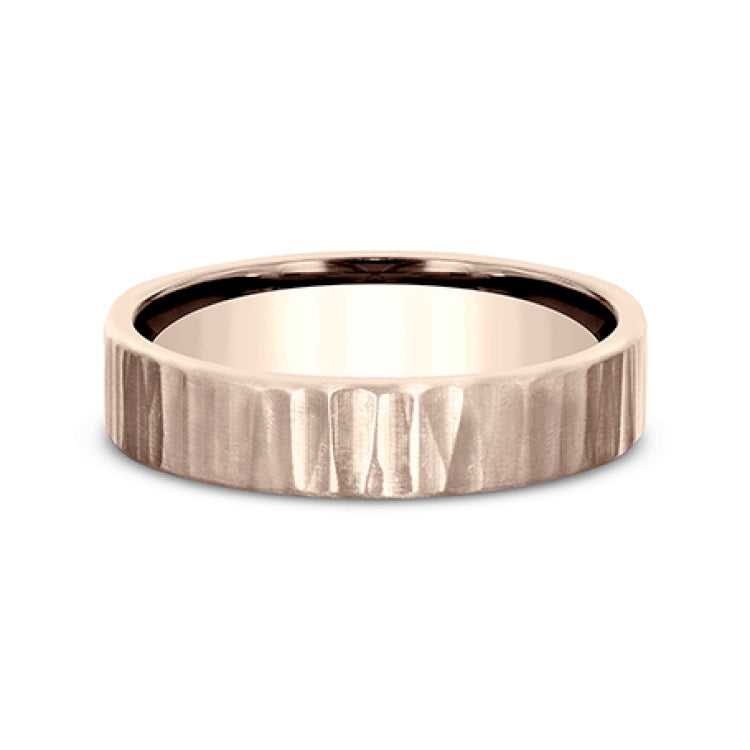 5mm, Comfort fit14K Rose GoldVertical hammered finish