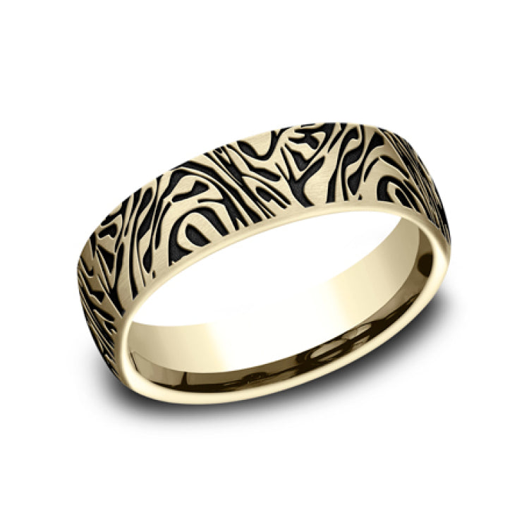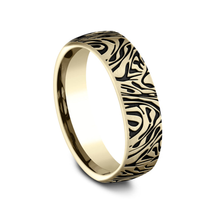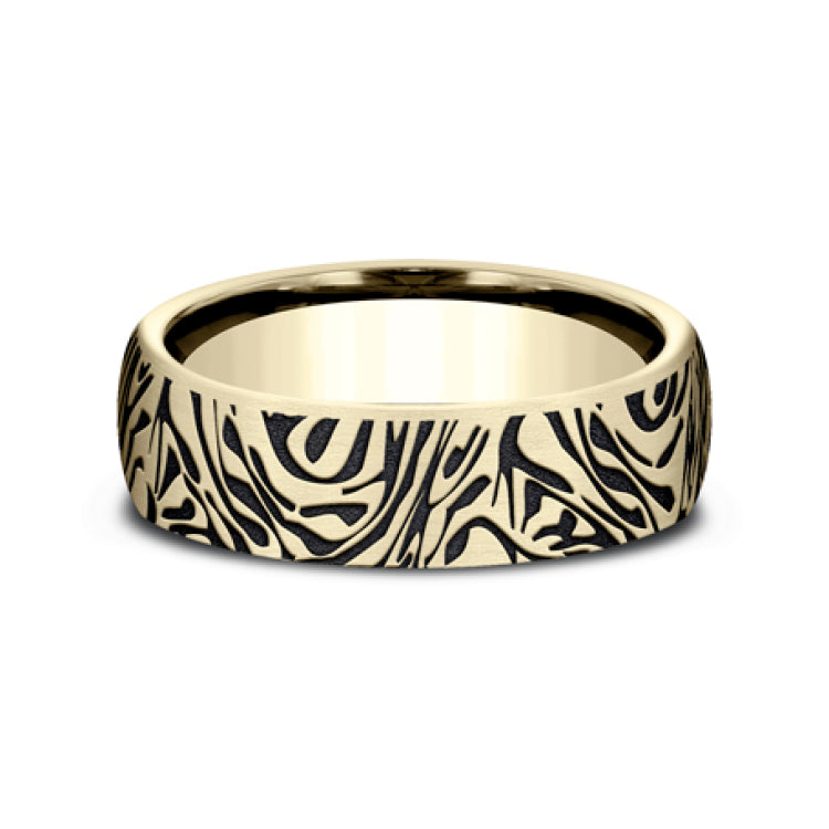 6.5mm, Comfort fit14K Yellow GoldFaux mokume pattern
