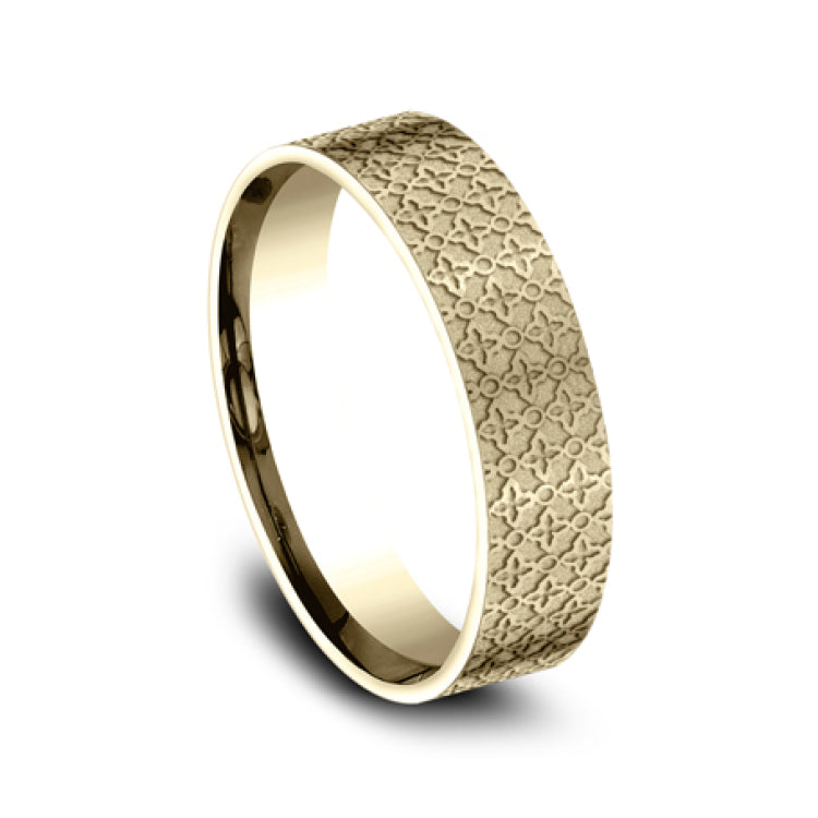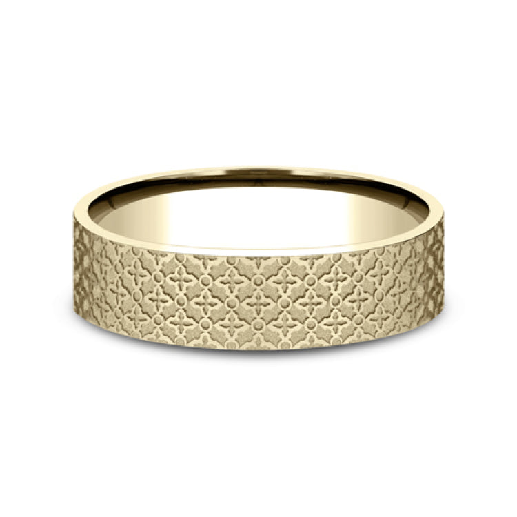 6mm, Comfort fit14K Yellow GoldOttoman floral pattern