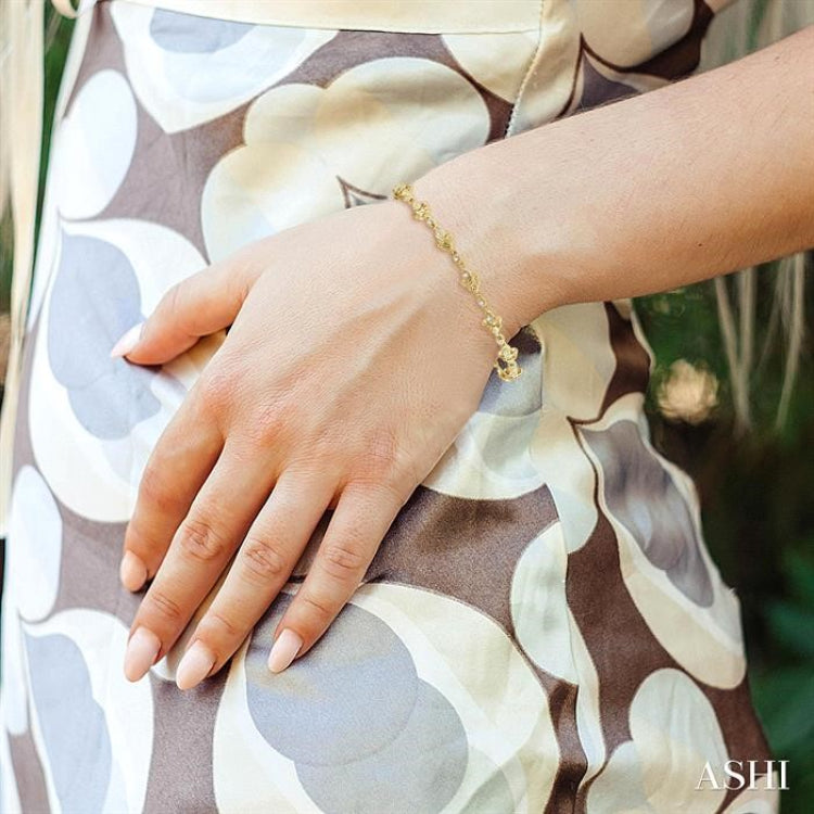 1/3 Ctw Fleur De Lis Round Cut Diamond Link Bracelet in 10K Yellow Gold