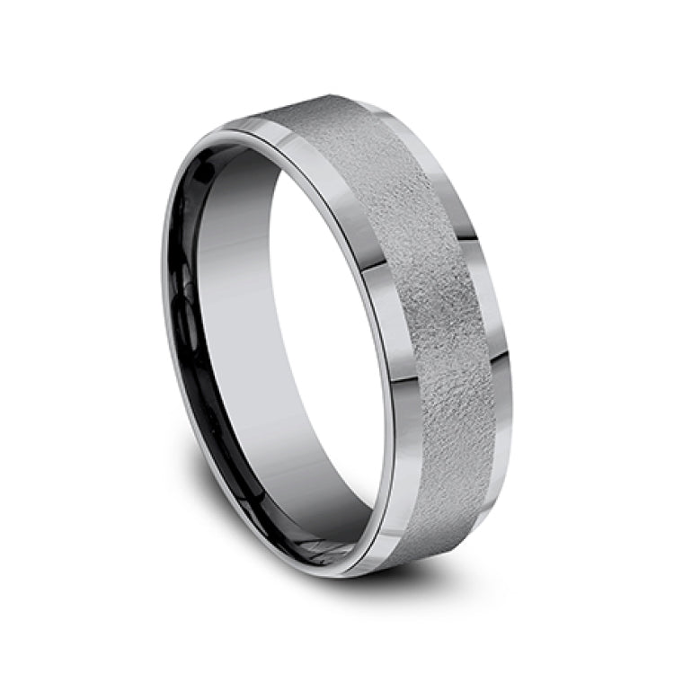 7mm, Comfort fitGrey TantalumWire brush center, bevel edges