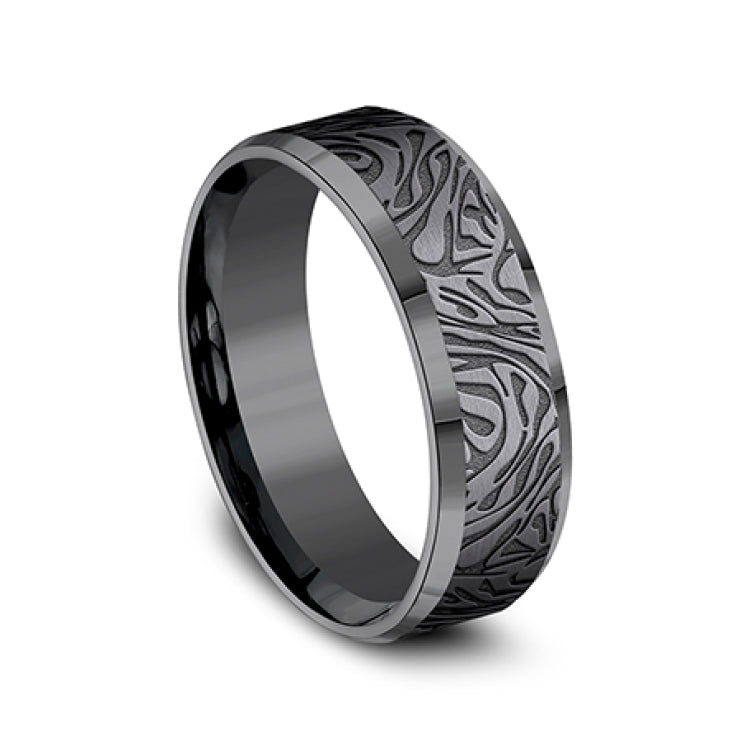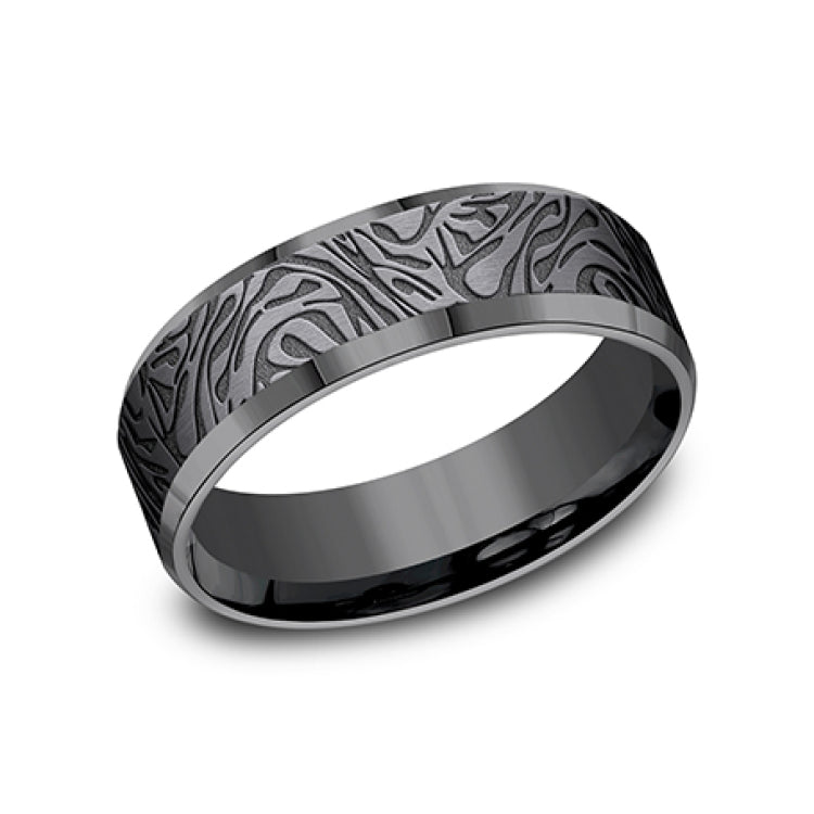 7mm, Comfort fitDarkened TantalumFaux mokume pattern, polished slightly beveled edges