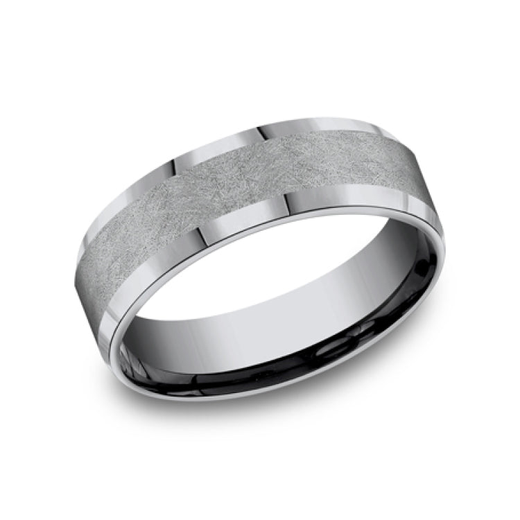 7mm, Comfort fitGrey TantalumSwirl center, polished bevel edges