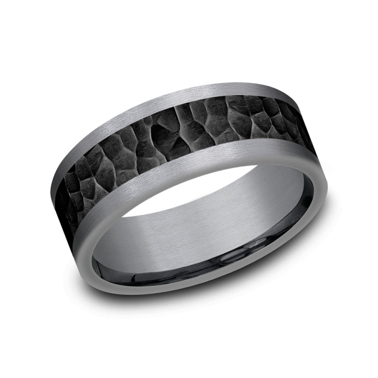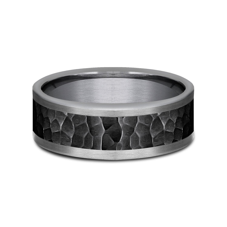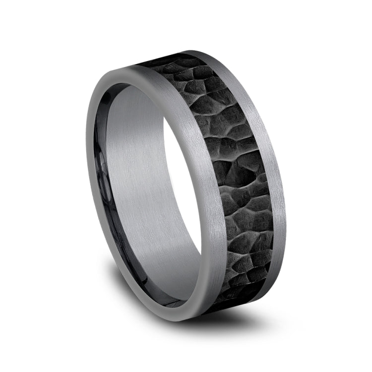 8mm, Comfort fitGrey Tantalum and Black TitaniumHammered center, straight edges