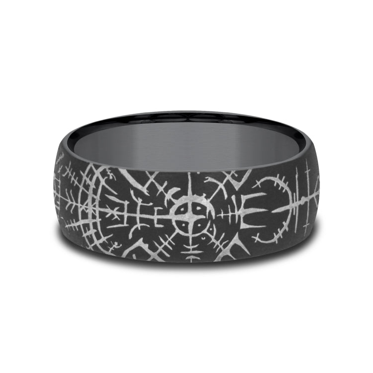 8mm, Comfort fitDarkened TantalumViking compass pattern