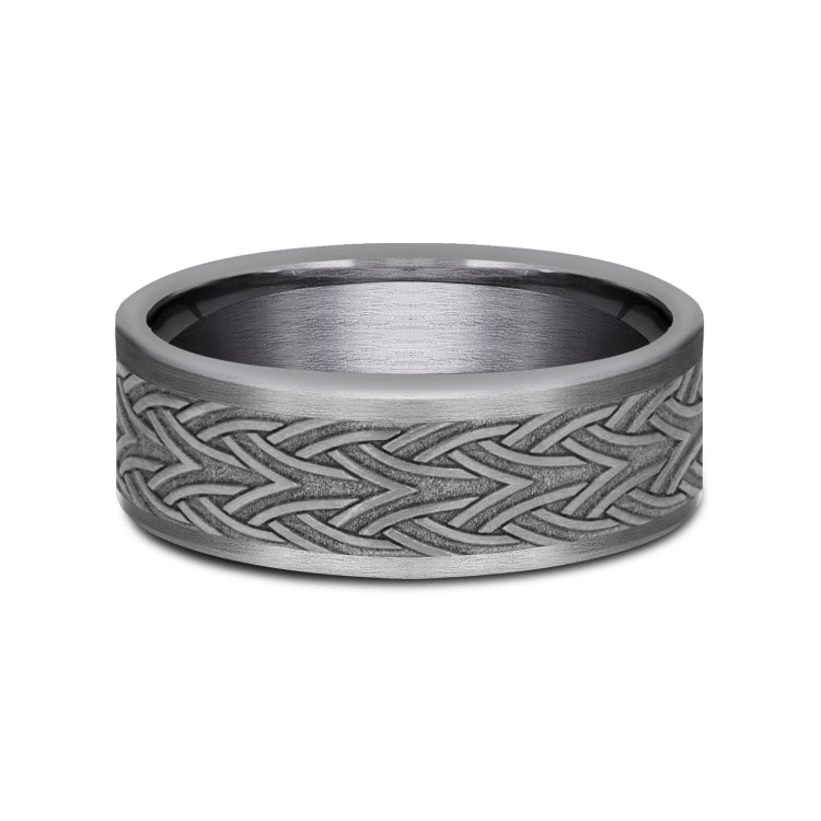 7mm, Comfort fitGrey TantalumCeltic arrow knot designed center, thin edges