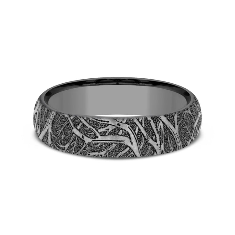 6mm, Comfort fitDarkened TantalumForest branch pattern