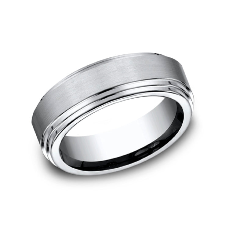 8mm, Comfort fitWhite CobaltSatin center, polished double bevel edges