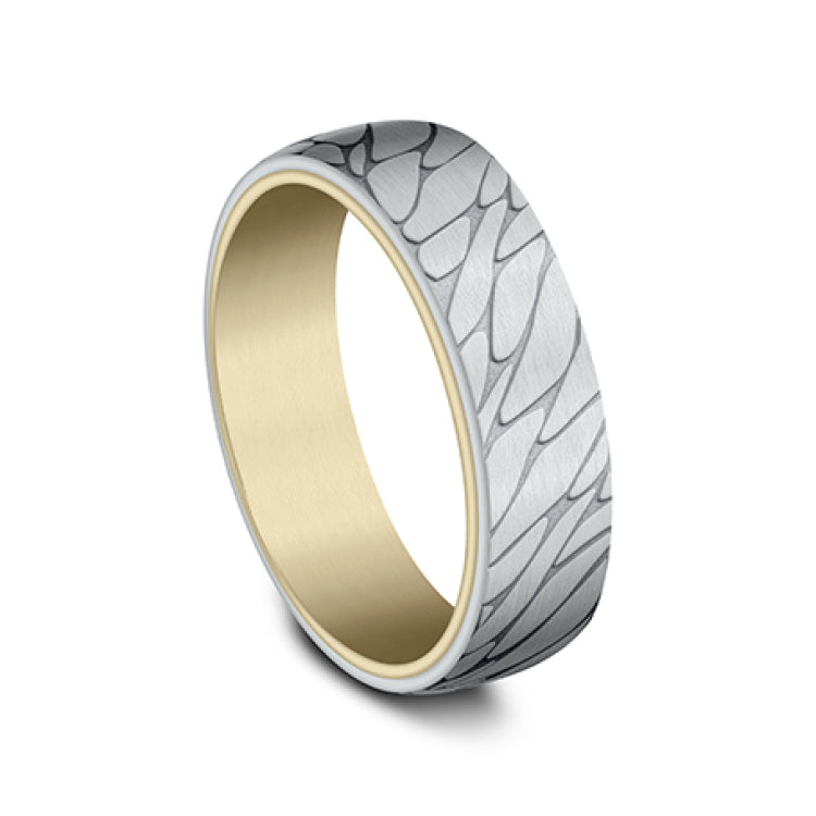 6.5mm, Comfort fit14K Yellow and White GoldPebble pattern