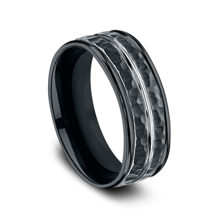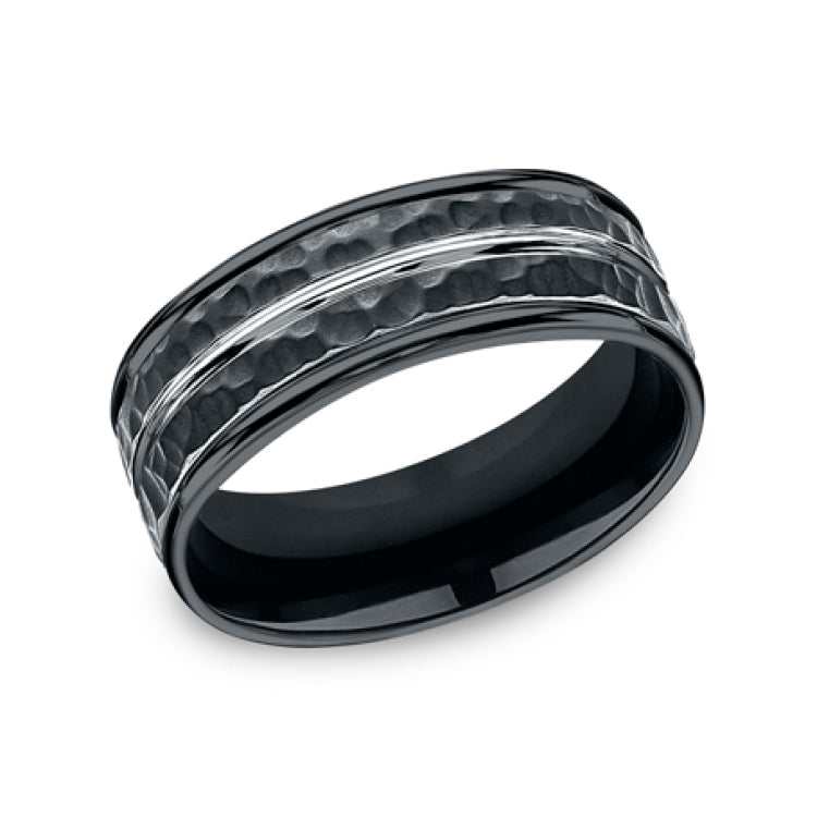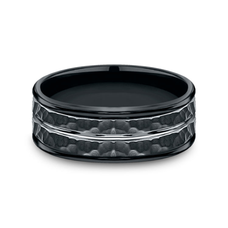 8mm, Comfort fitBlack CobaltHammered finish and polished center cut, round edges