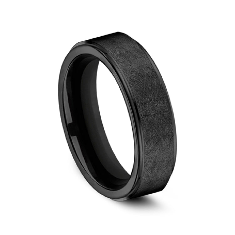 7mm, Comfort fitBlack TitaniumSwirl finish, polished edges